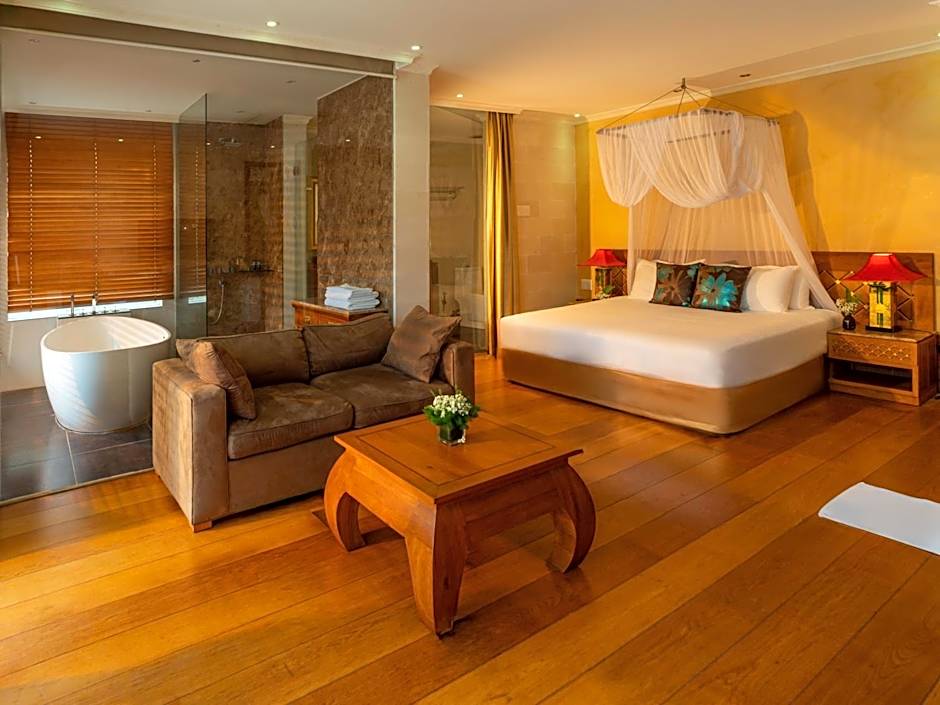 Fitted with wooden flooring, this room offers a flat-screen TV with cable channels, a DVD player and a personal safe. Room features views of the pool and include a large balcony with sofa. Private bathroom comes with rain shower, bathtub and free toiletries.